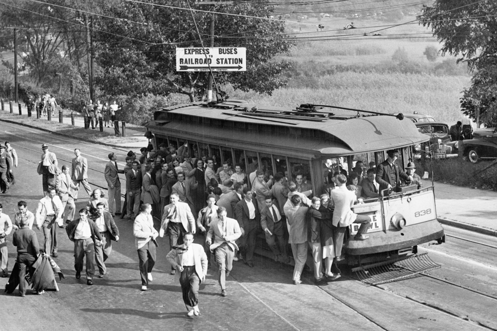 Open trolley cars came from downtown New Haven and left fans off at Yale field, for tail-gating and the game, and remained parked all along the avenue during the game…as they arrived we could see that every bench in the trolleys was filled, people were hanging off the running boards and the motor men were merrily clanging the bells to add to the festive atmosphere.