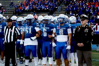Before kickoff an athlete from both teams gets a Scholar Athlete Award, which is based off their work both on and off the playing field. West Haven captain Yusef Turner was the recipient of the award due to his impressive 4.03 GPA and work ethic