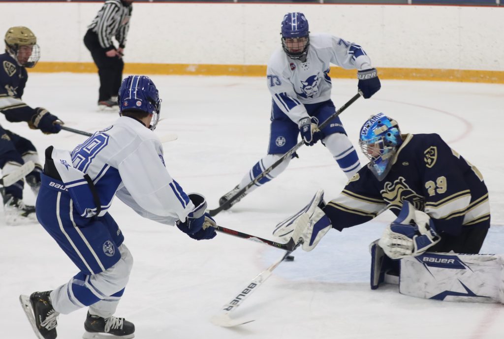 Glastonbury closed the period with three goals in the final 4:59, before Sean Bush scored 1:15 into the second off an assist from Wellins to even the game at three. DiLegge scored an unassisted goal with 6:04 remaining in the middle period, but Glastonbury evened the game at four 2:21 into the third.
