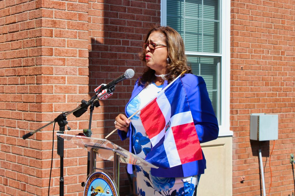 Before a prayer by the city’s 2023 Hispanic American of the Year, West Shore Fire Department Chief Rafael Zayas, 2023 Miss Puerto Rico of Greater New Haven Miriam Cruz sang “The Star-Spangled Banner.” Rosaura Liz de Rodriguez followed with a moving rendition of the Dominican national anthem, “Himno Nacional de la República Dominicana.”