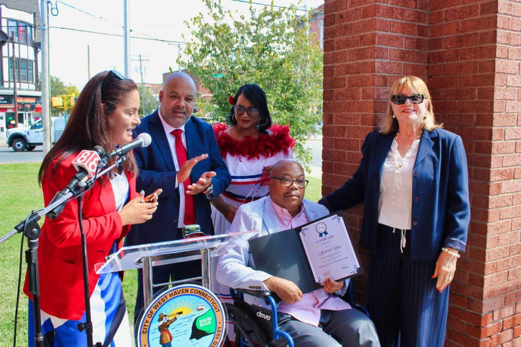 Along with descendants of folks from the Dominican Republic and Latin America, he was also joined by an array of West Haven and New Haven officials, West Haven employees and residents, and city and state leaders, including Rep. Bill Heffernan, D-West Haven, who presented King with an official statement from Lt. Gov. Susan Bysiewicz and a House of Representatives citation from the city’s delegation.