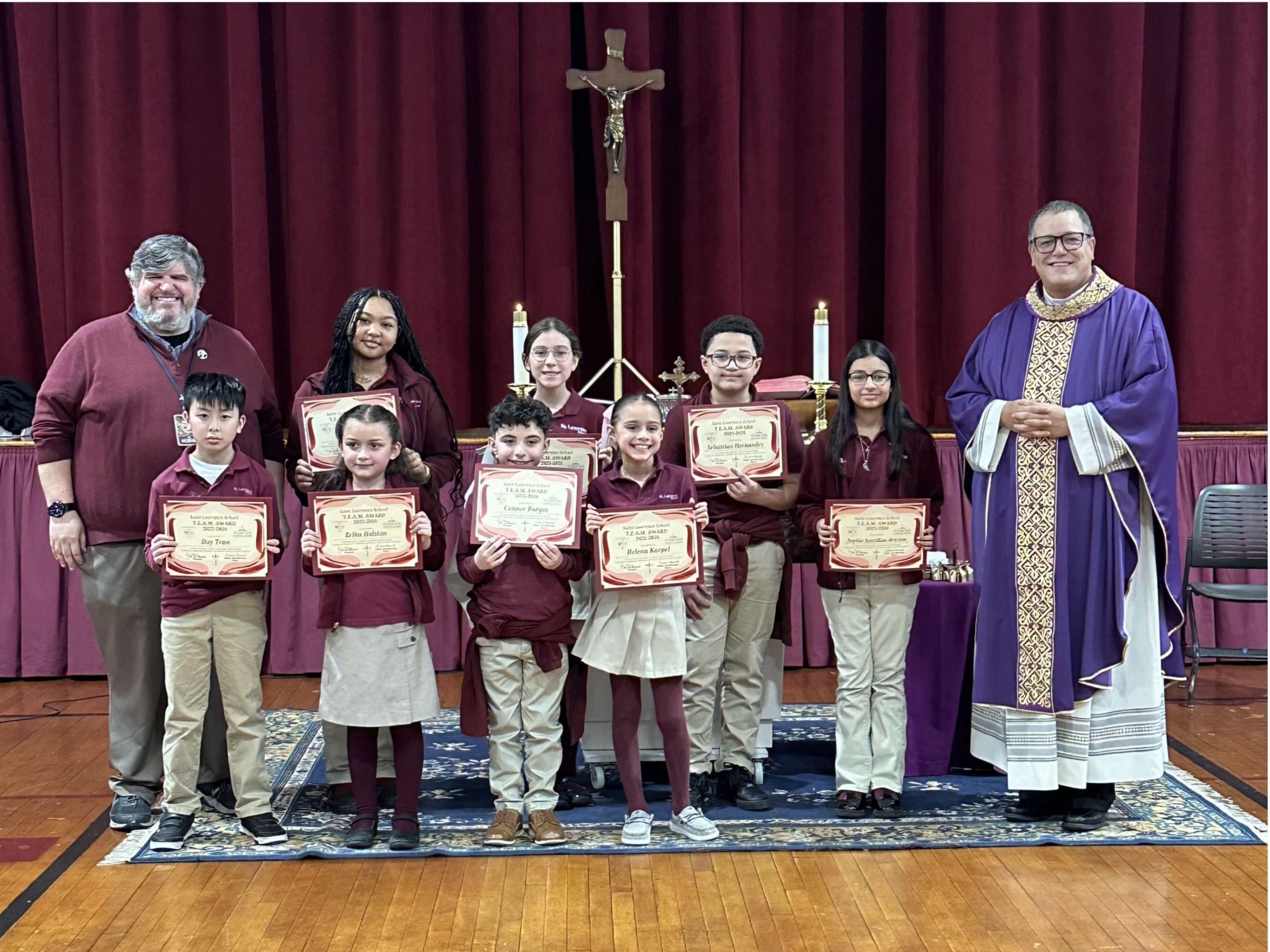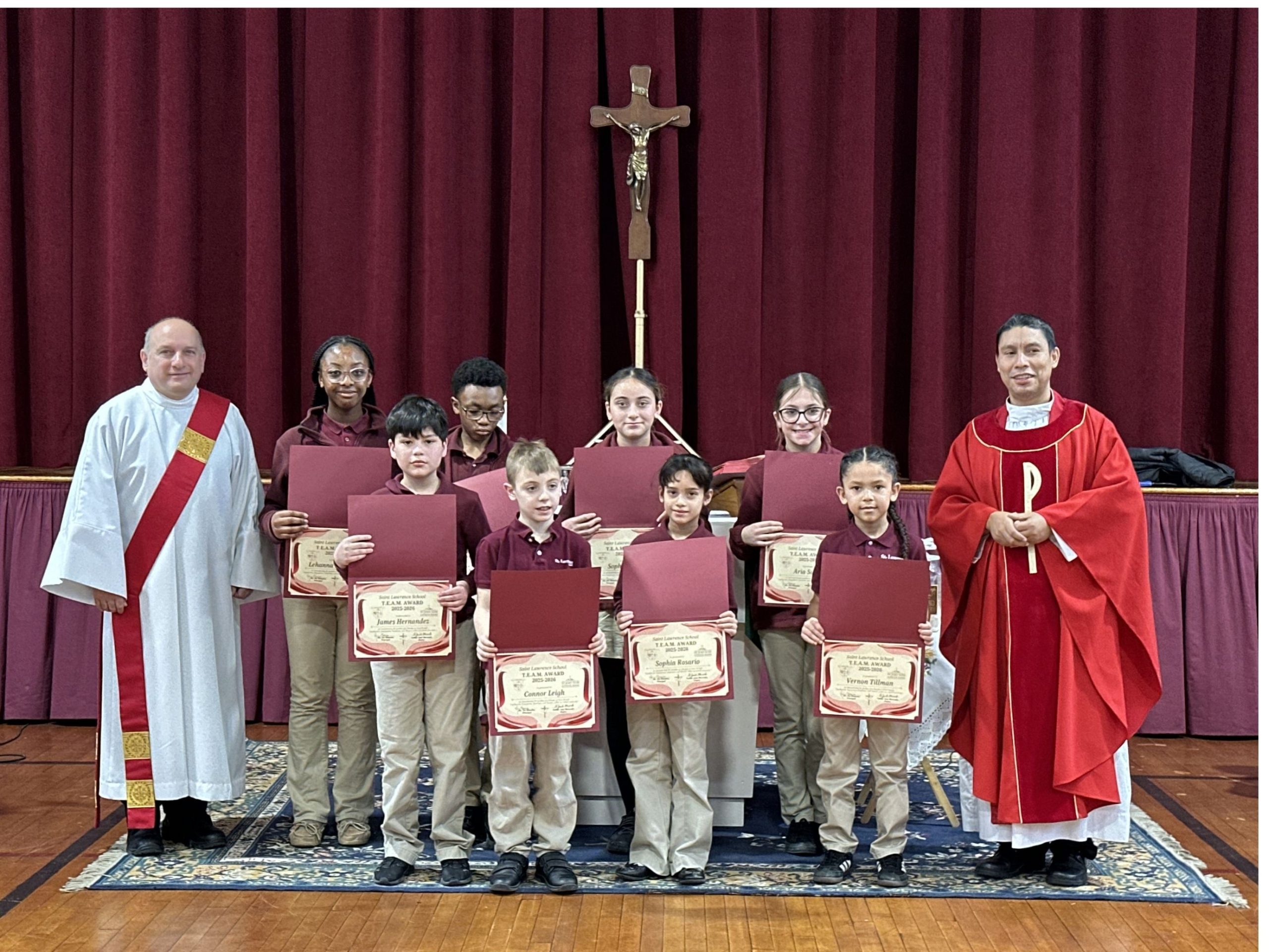 Students of the monthSt. Lawrence School’s Students of the Month program honored designated students recently for both February and March. March: Front Row - Duy T, Erika H, Connor B, Helena K. Back Row - Mr. Messina, Lina D, Bianca A, Sebastian H, Sophia S, and the Rev. José Mercado -