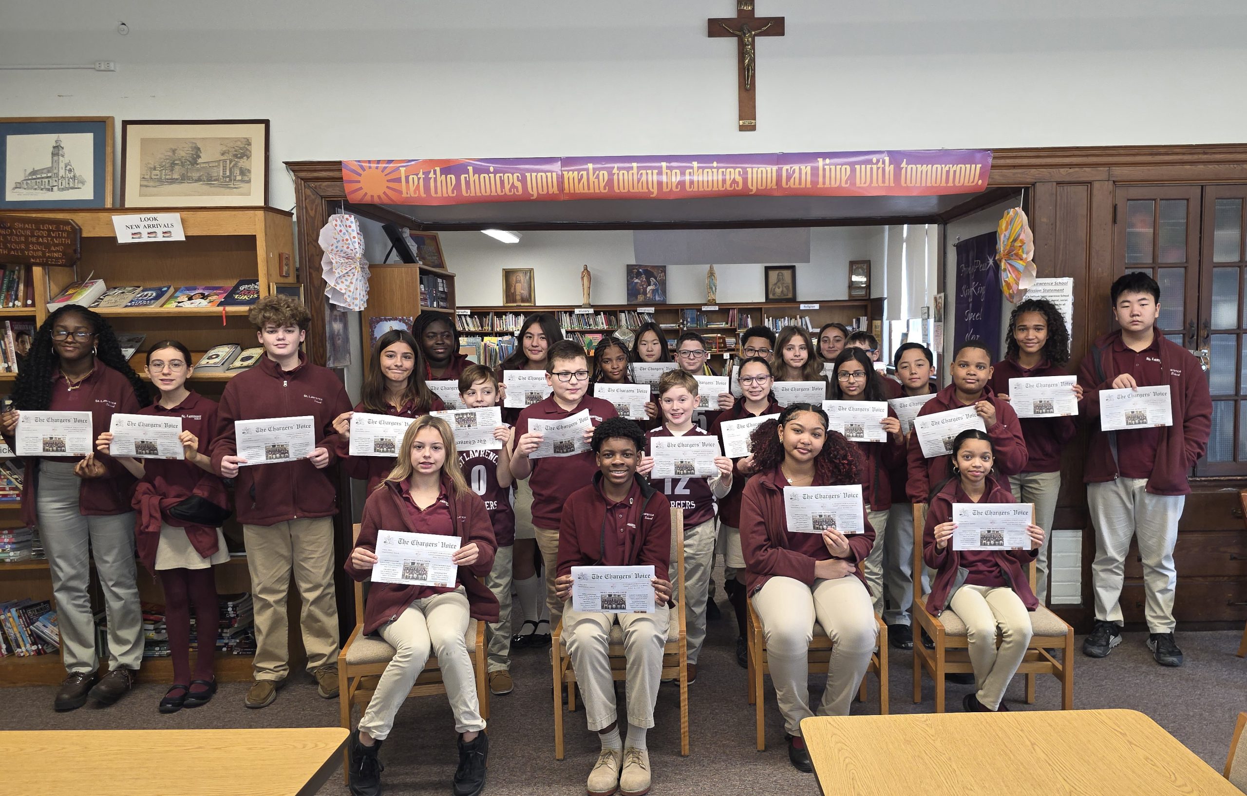 Hot off the press!The students of St. Lawrence are excited to announce the launch of their new student-written newspaper, The Chargers Voice. The paper was inspired from career day at the school after the kids met with Editor William Riccio, of the West Haven Voice about publishing a newspaper. They were so inspired , that they started their own. The first edition has just been published. Written by the students, the newspaper features stories and events about the people and activities who make the school special along with articles that reflect the school’s Catholic faith and religious life. -