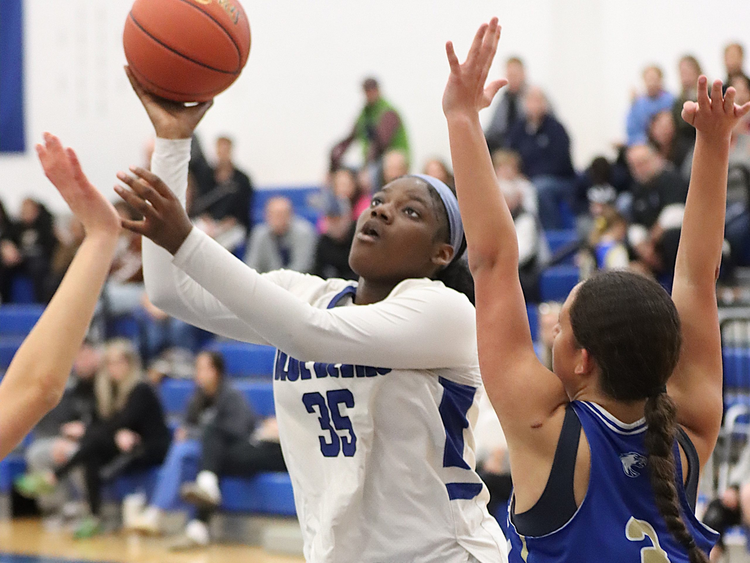 WHHS Sports Round UpNoelle Lawrence goes for the layup in the Blue Devils' 46-26 win over Newtown. -