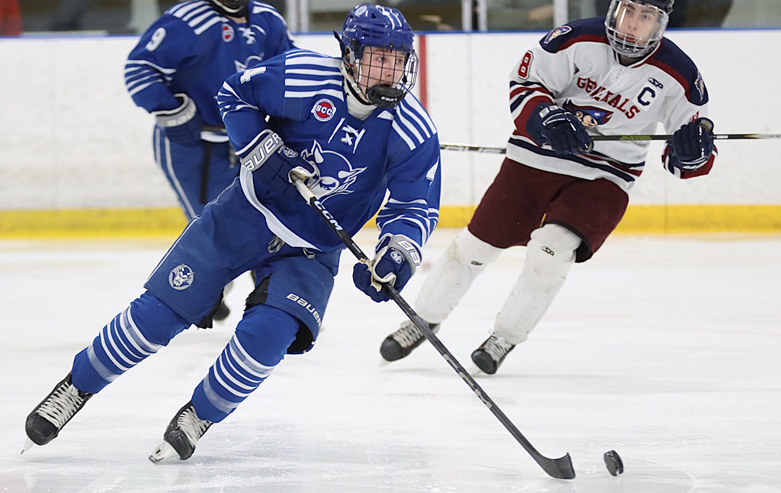 WHHS Sports Round UpJack Wellins carries the puck up ice versus Farmington. -